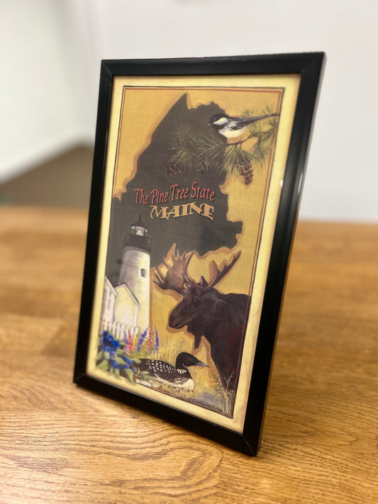 MAINE STATE HERITAGE MAP Framed Print souvenir - 6" X 10"