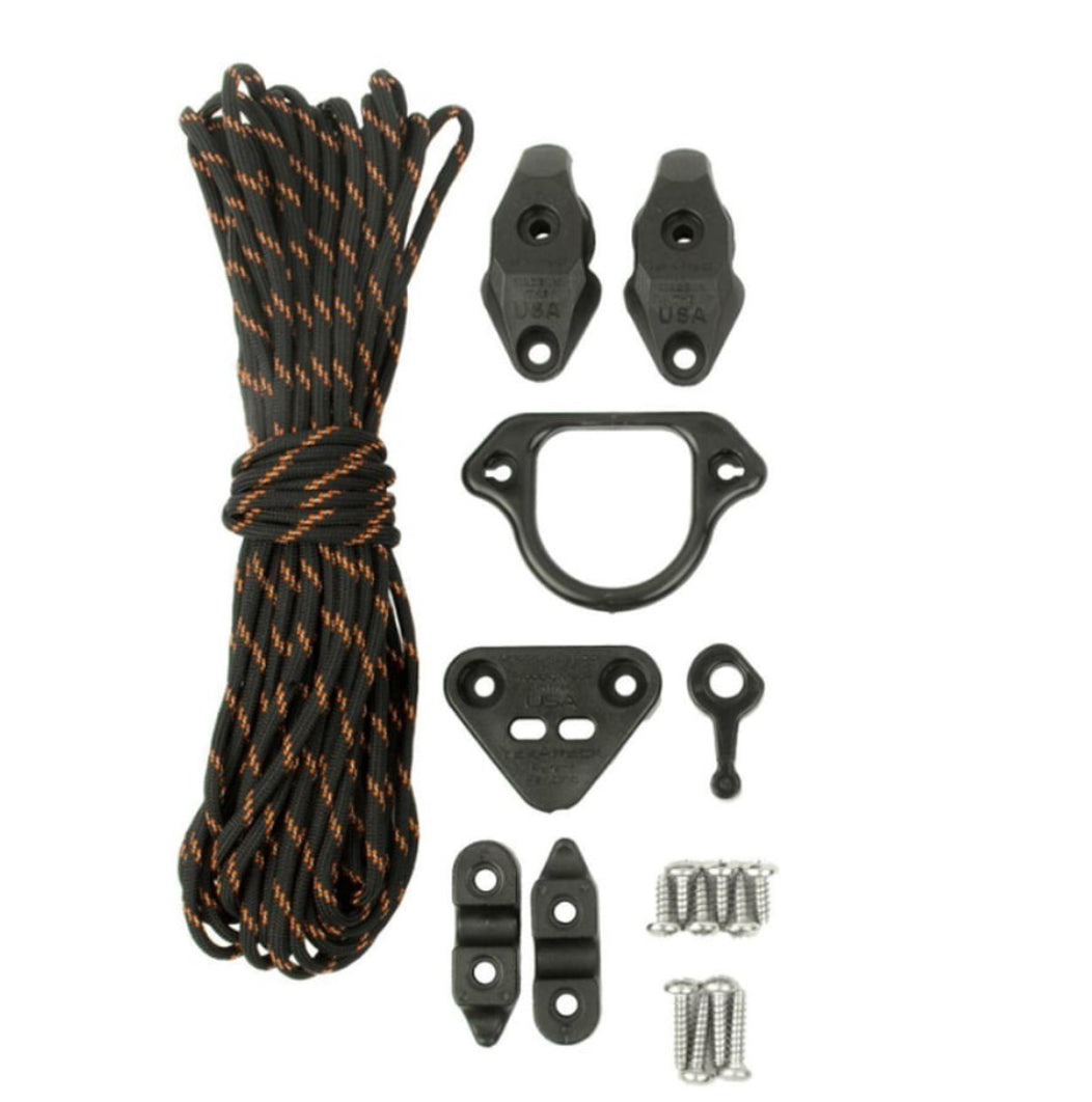 The first anchor trolley designed specifically for the job, the YakAttack LeverLoc™ Anchor Trolley features a LeverLoc™ line clamp, which locks your trolley line in place with a simple “flip of a switch” motion. Keeping the trolley lines in line is the PadHook, a simple but clever design that combines the functionality of both a pad-eye and a hook, keeping even the tightest trolley lines in place on the side of the kayak, not over your gunwale. When not in use, the easy-knot trolley ring snaps into the base of the LeverLoc™, quietly secured until deployed. Includes 35’ of USA made 550 paracord with a highly reflective tracer. Features YakAttack Stealth Pulleys for super smooth operation.